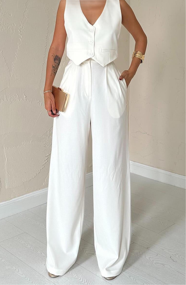 Pantalon Tailleur Écru Femme Chic