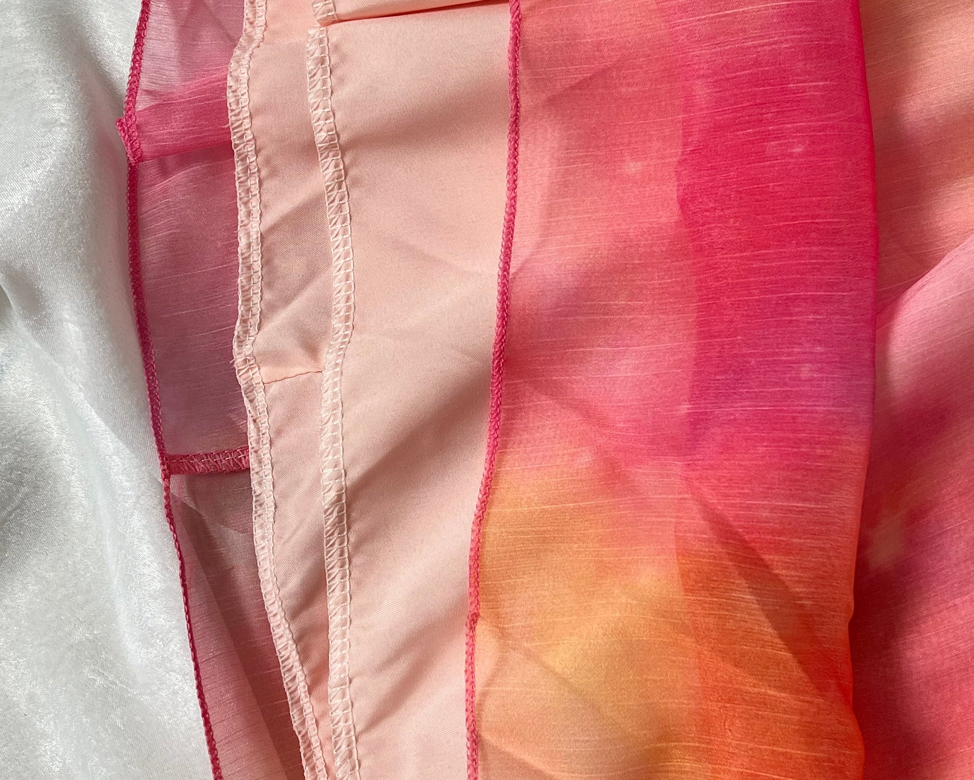 Mousseline légère et texturée, doublée pour éviter toute transparence.
