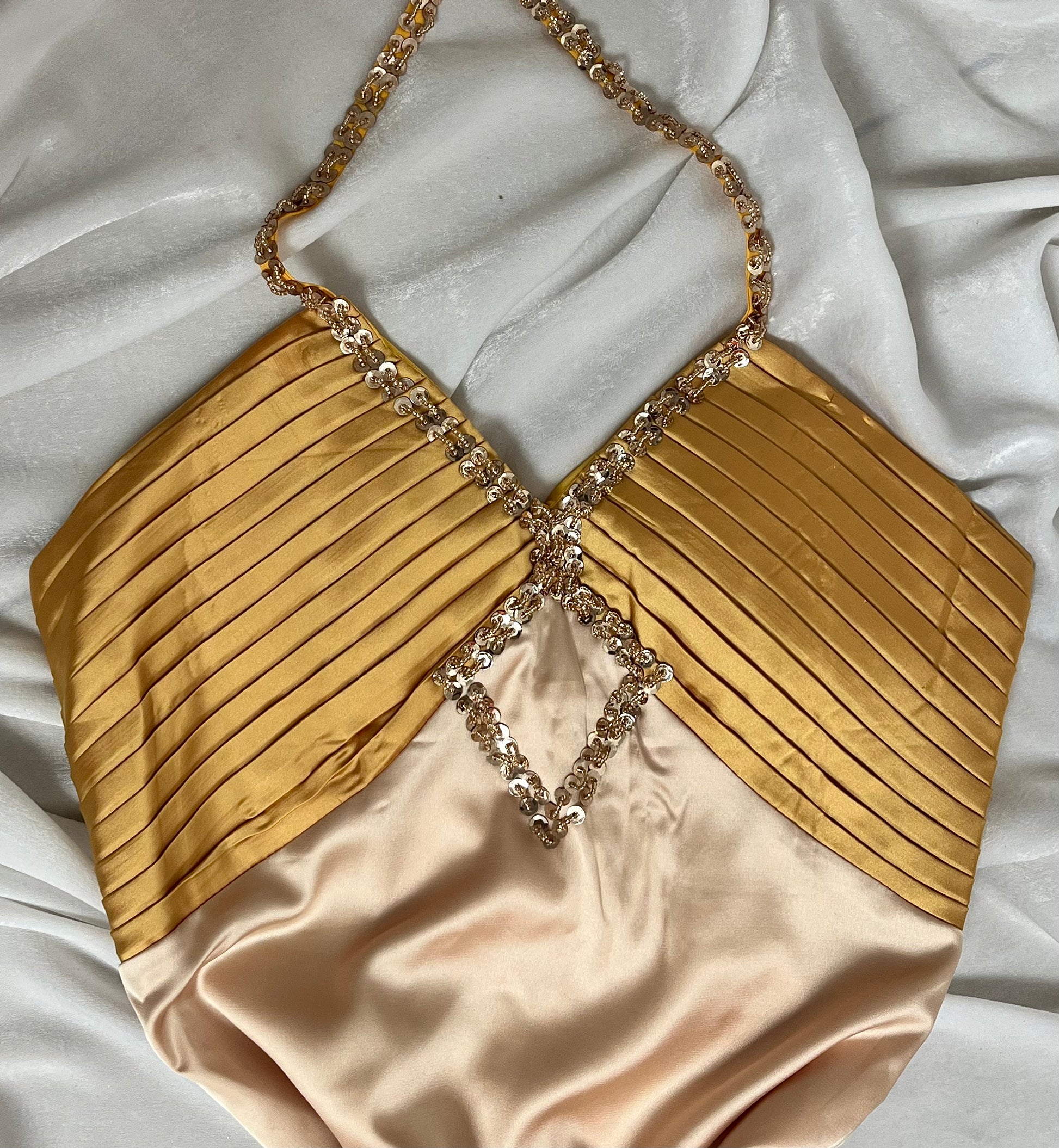 Son satin capte la lumière et ses coques intégrées maintiennent parfaitement la poitrine : pas besoin de soutien-gorge, pas de transparence, juste toi, divine et libre.