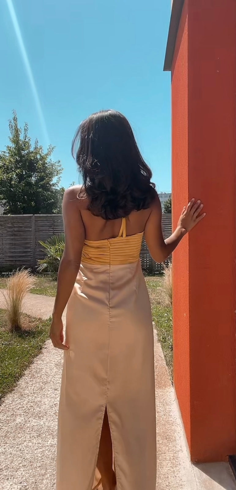 Elle descend jusqu’aux chevilles, idéale avec des sandales, talons ou même pieds nus.
