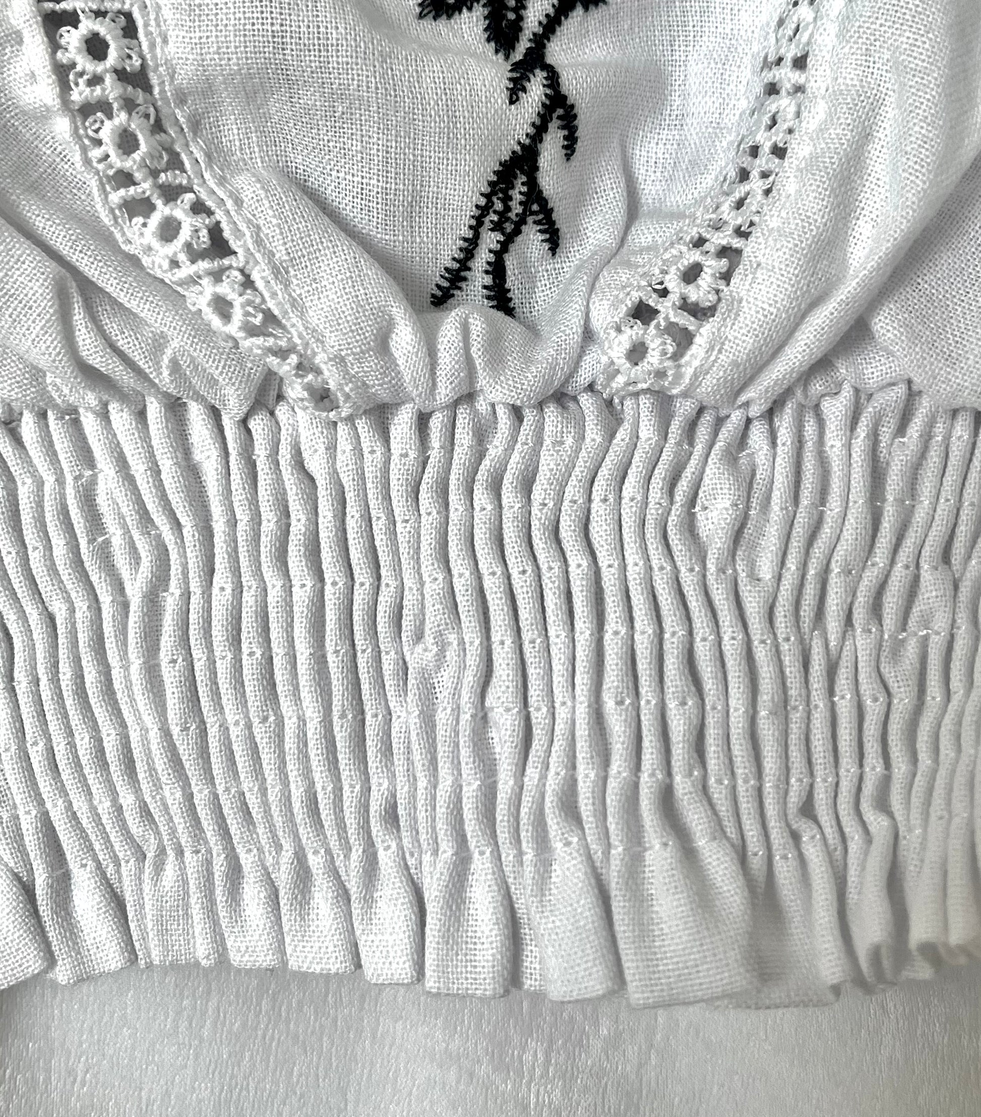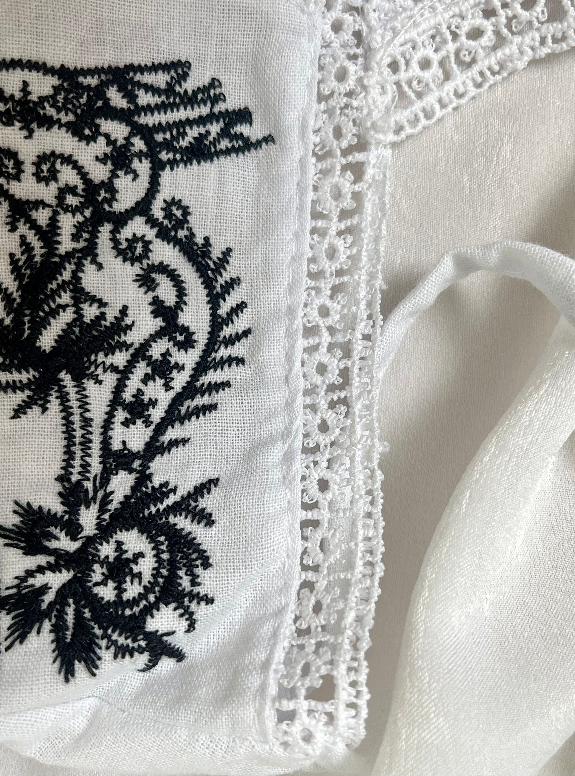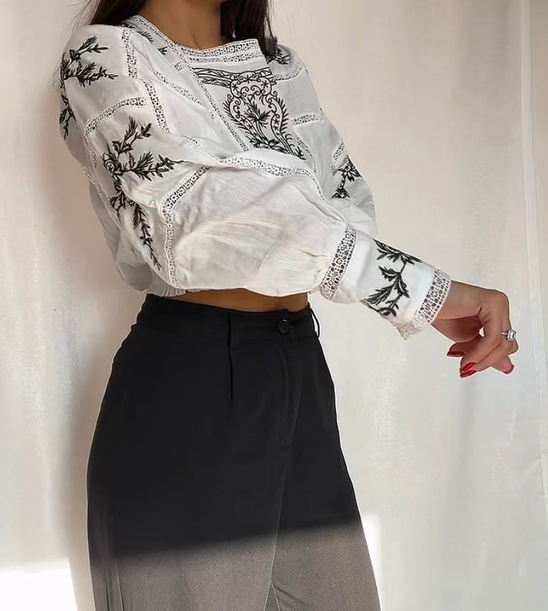 Ses broderies noires contrastantes en font une pièce unique, parfaite pour des looks simples mais sophistiqués.
